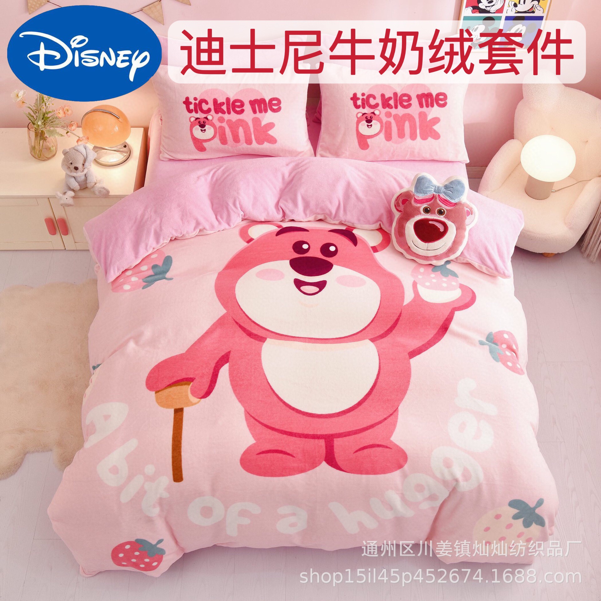 ディズニーのミルクの毛の4つのセットの子供の漫画のイチゴの熊の3つのセットは厚くて暖かい秋冬の寝具を厚くします。