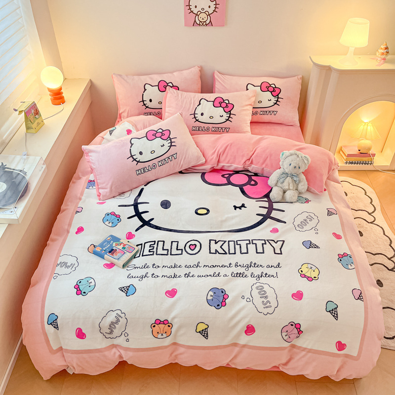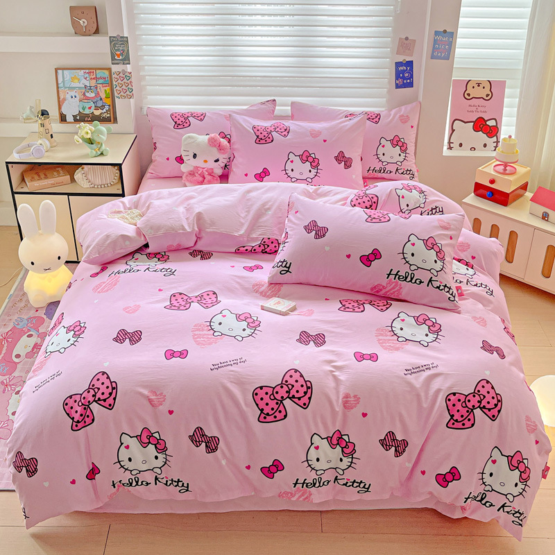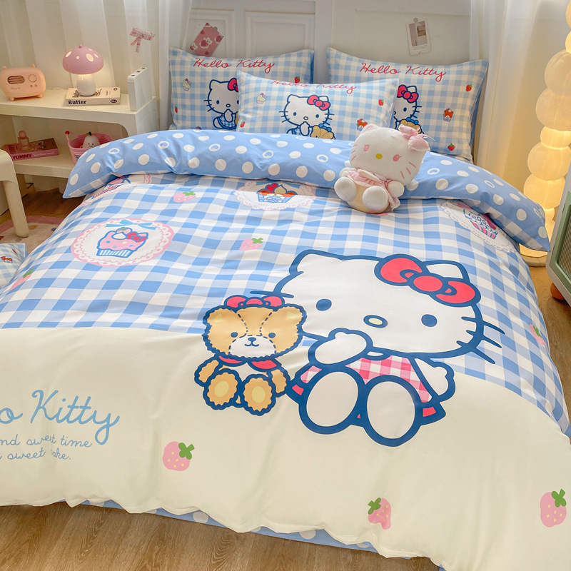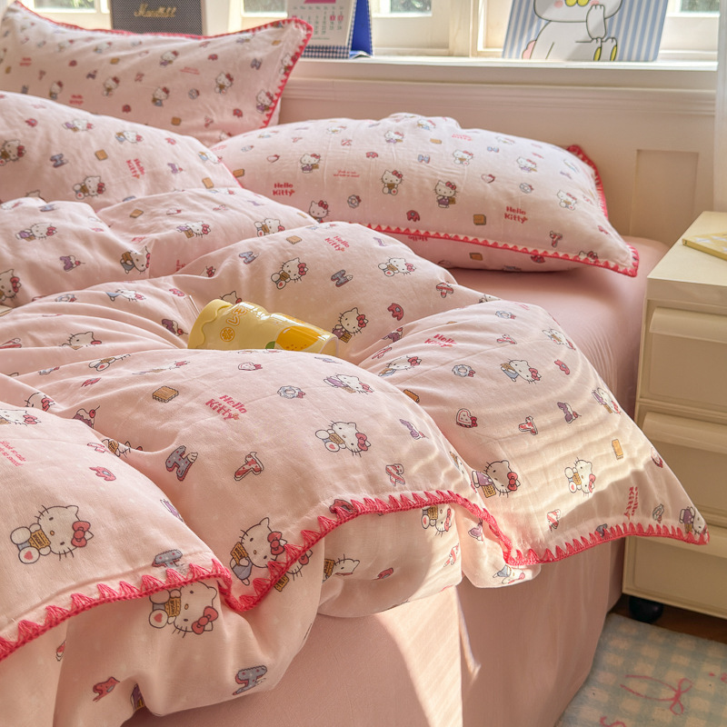 ktcat サンリオ 綿二重糸 4点セット シェルエッジガーゼ 純綿 ハローキティ 3点セット 掛け布団カバー ボックスシーツ