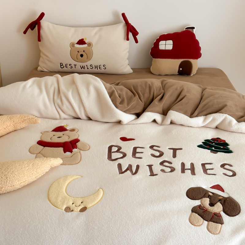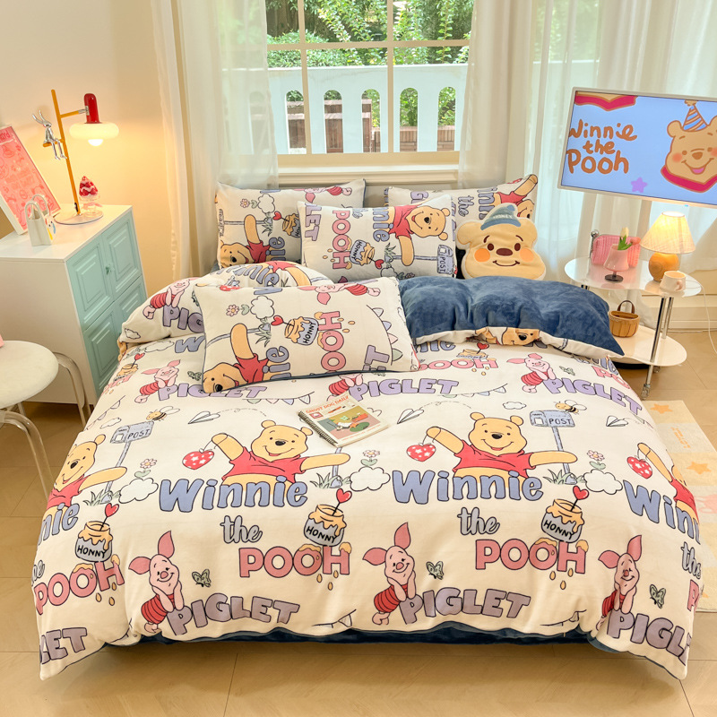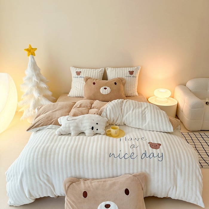 2023新型牛乳絨毛四点セット-抱熊冬保温絨毛熊アニメかわいいベッド用品