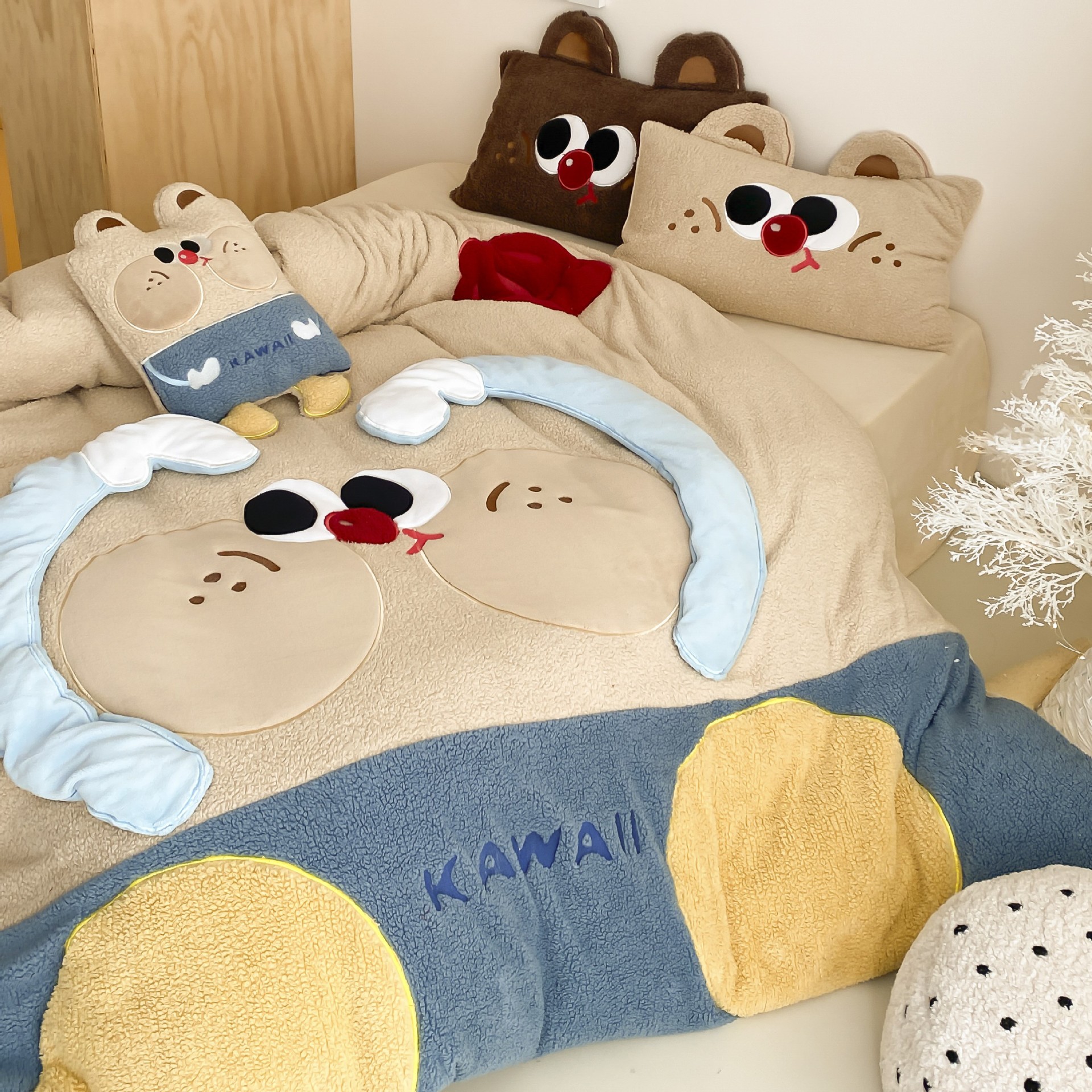 かわいい萌え熊立体重工テディ牛乳パイル4点セット冬の保温で子供のベッド用品を厚くする