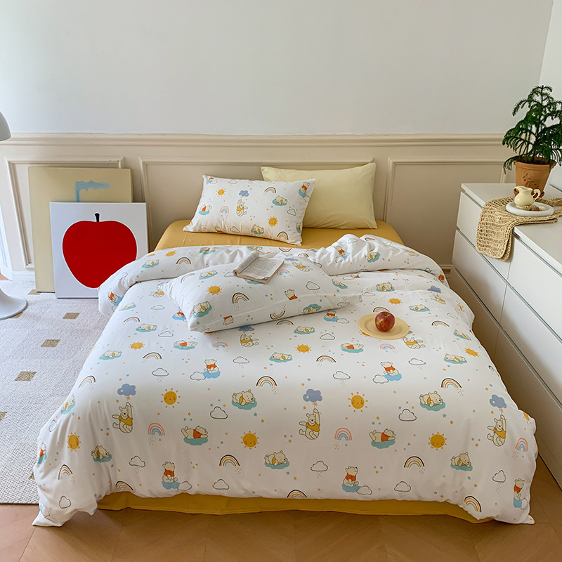 春夏アニメ水洗い綿綿四点セットタオル刺繍熊布団カバー学生寮布団カバー三点セット1.8m