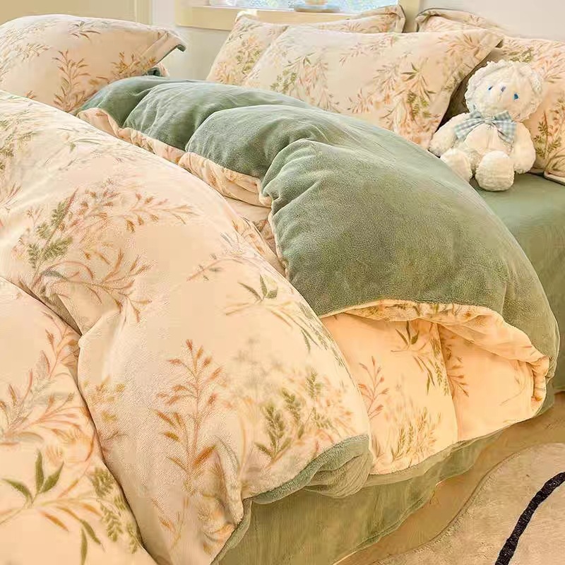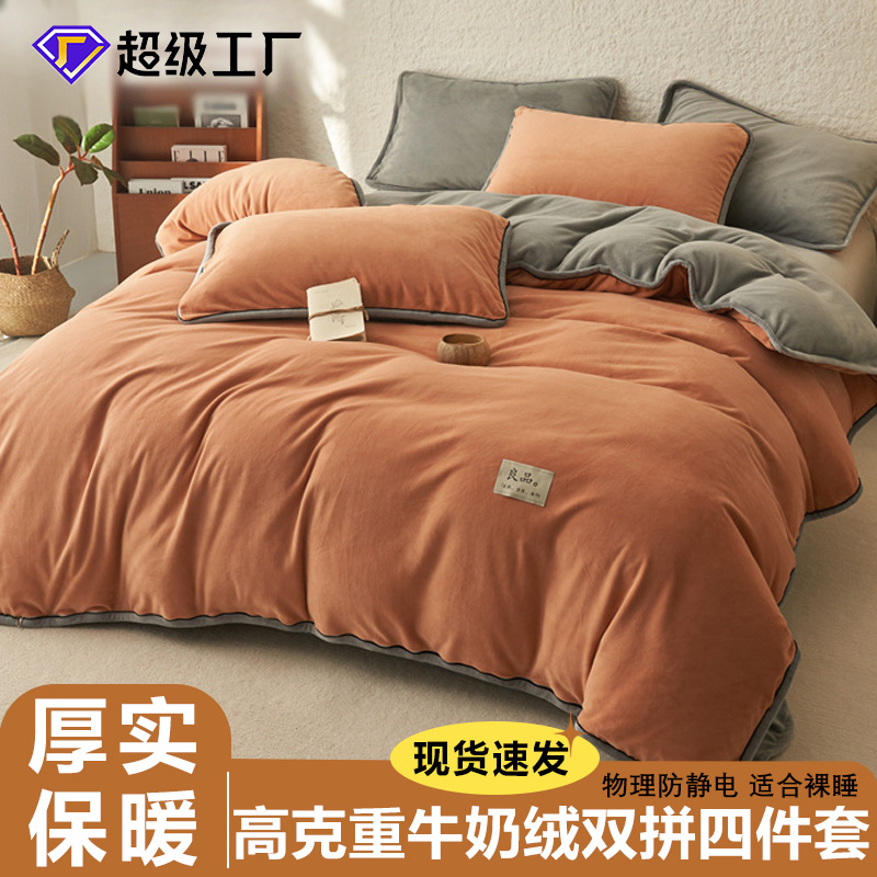 2025年新作、裏起毛・厚手ミルクベルベット4点セット、230g、柔らかくプリントされた金彩ベルベット、ギフト寝具、代理販売