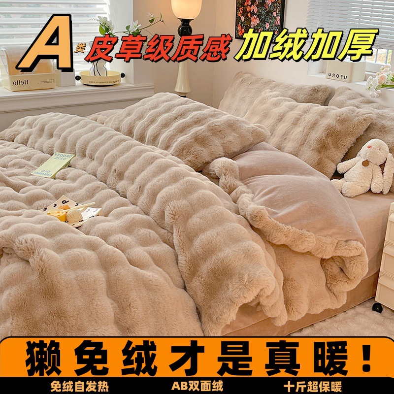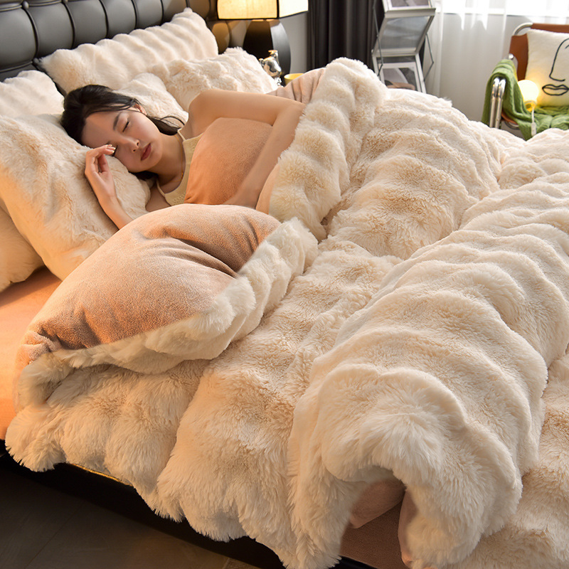 A類高級秋冬牛乳絨毛4点セットサンゴ絨毛保温厚いウサギのぬいぐるみシーツカバー3点セット4