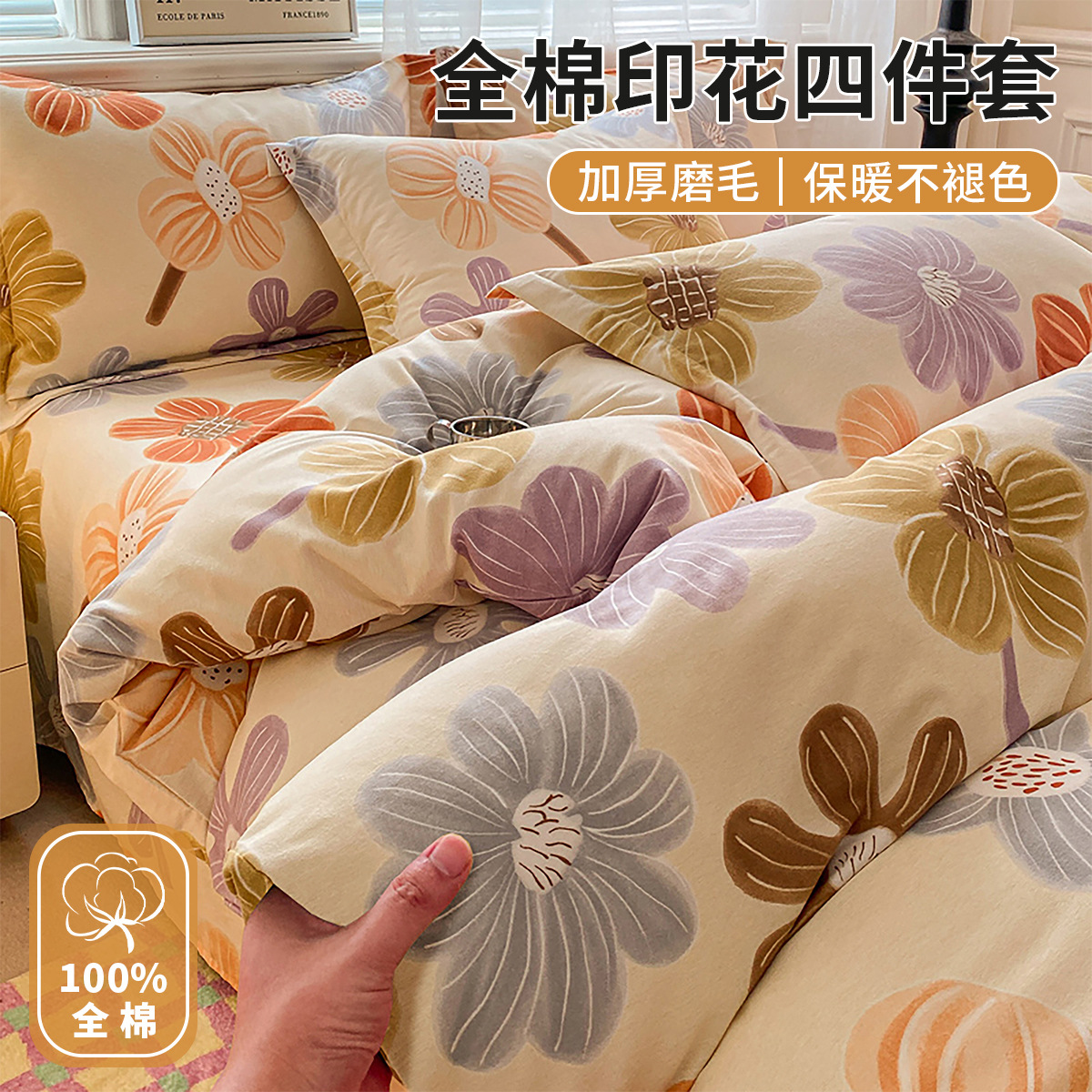 純綿4点セットの毛磨き南通家紡純綿寝具シーツ4点セットの秋冬シンプル