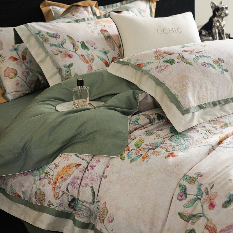 アメリカ式の軽豪華な高さの高さの綿の綿の4つのセットの春夏の高級感のプリントは四季のタイプのベッドの製品をカバーします。