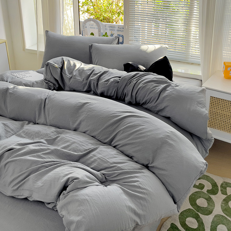 シンプルで軽い夫格の純色の水洗い綿はベッド用品の四つのセットをカバーしています。