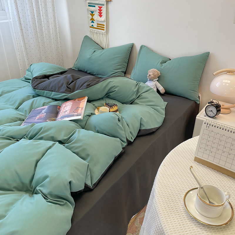 越境水洗綿無地ツートンカラー4点セット超ソフト起毛掛け布団カバー、シーツ、ボックスシーツ、学生寮3点セット