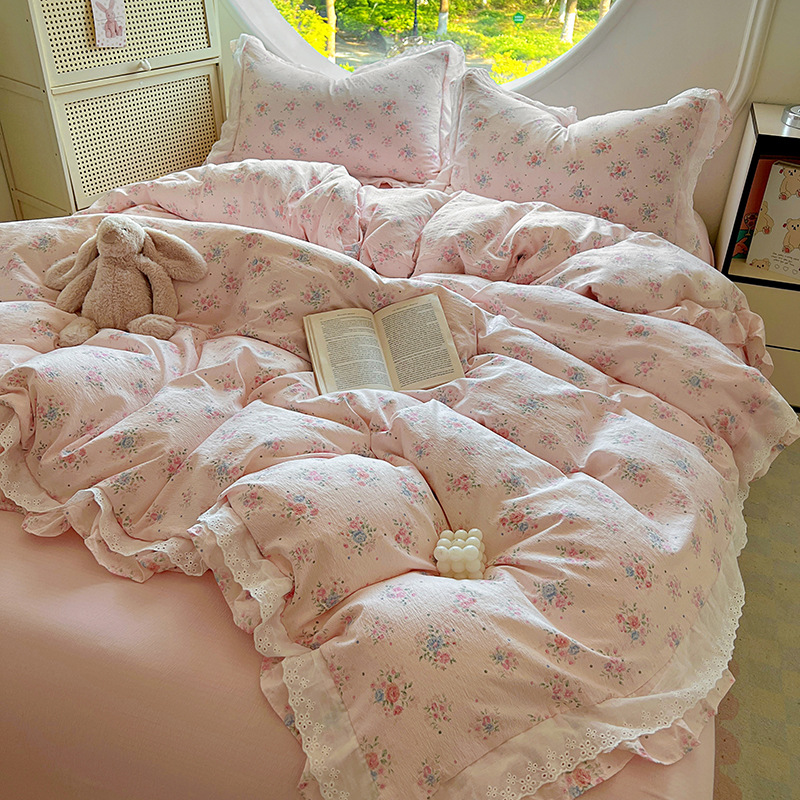 フランス式プリンセス風純綿レース四点セット純綿水洗い綿花布団カバーシーツ少女心寝具