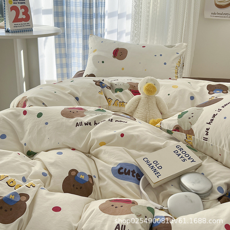 Ins風熊熊ベッドシンプル4点セット水洗い綿シーツカバー漫画学生寮3点セット