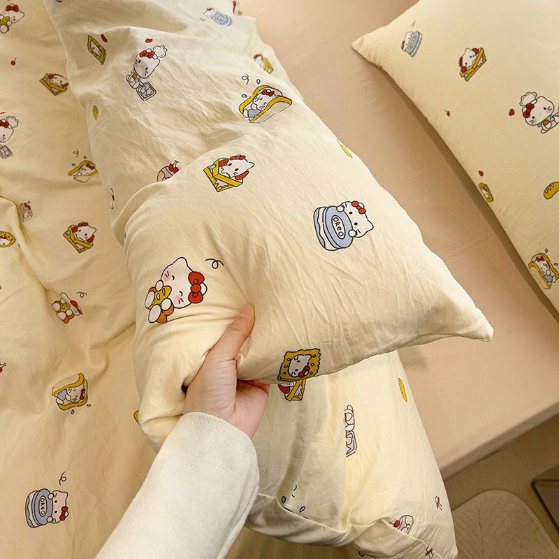 A類超柔水洗い綿アニメkt猫寝具4点セットins布団カバー学生寮シーツ3点セット