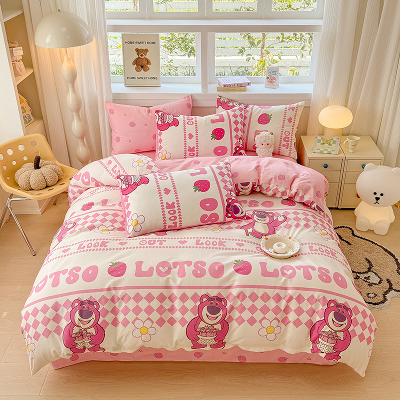 ディズニー純綿プリント4点セット綿ツイル漫画ストロベリーベア学生寮3点セットキルトカバーシーツ