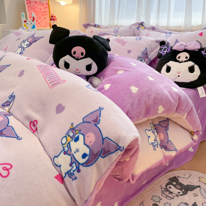 クロミ冬の牛乳の毛の4つのセットの漫画のベルベットの布団カバーのサンゴの毛kt猫の学生のタイプの寮の3つのセット