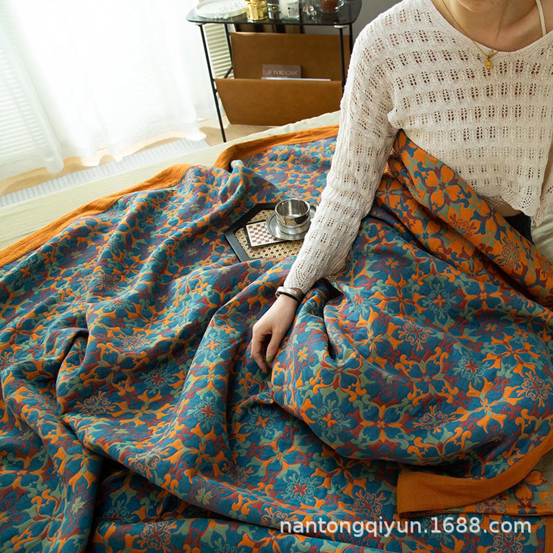 軽豪華三層ガーゼ大ジャカード寝室カバー多機能ソファーブランケット夏被絨毯母子通気多目的ベッドカバー