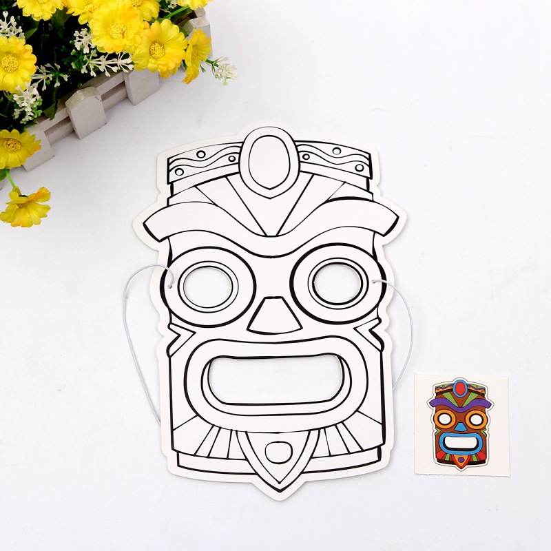 部族トーテム塗装マスク子供DIY絵画紙道具ハロウィーン線原稿空白落書きおかしな頭カバー