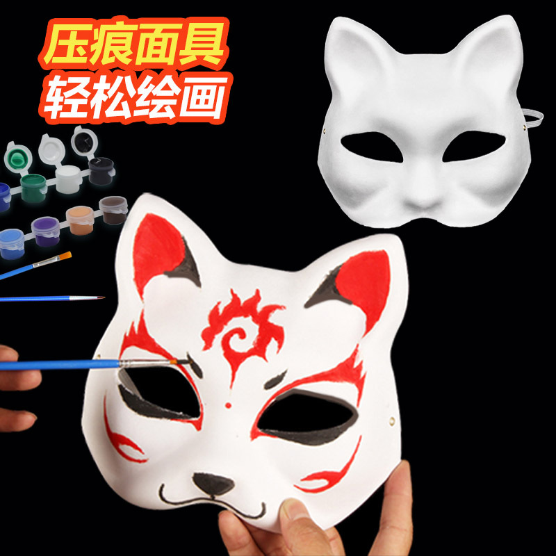 DIY白胚手描きパルプマスク猫顔キツネ空白京劇フェイスブック手作り玩具男女顔半分