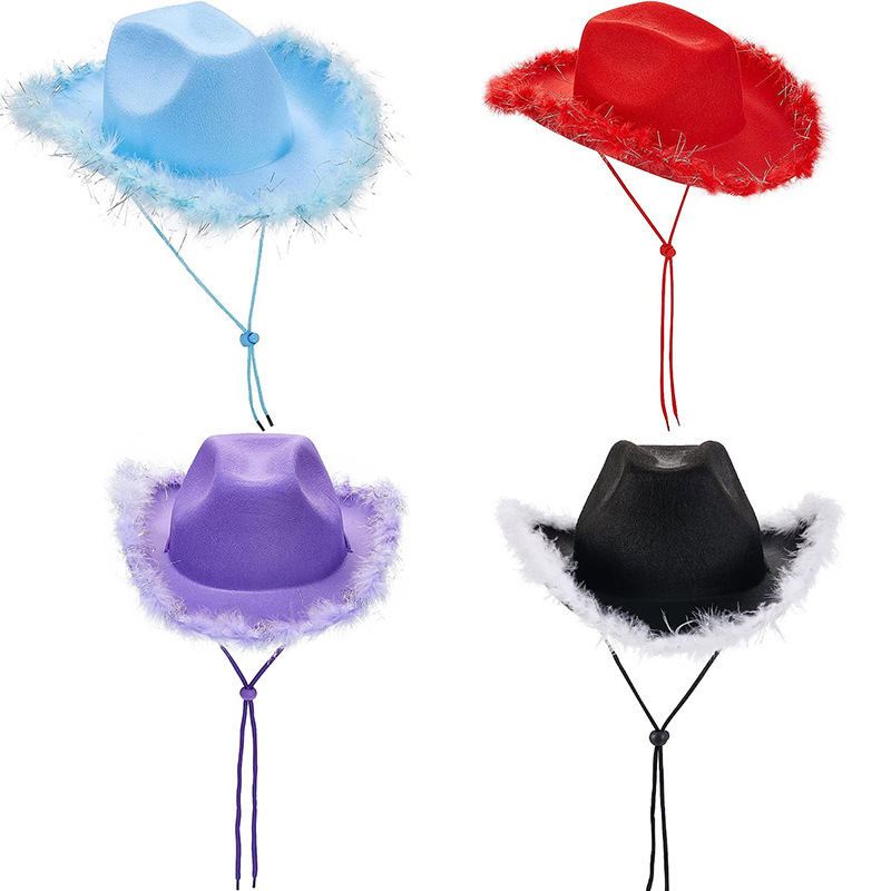 クリスマスレッドカウボーイハット フェザーブラックベルトカウボーイハット ウエスタンカウボーイハット サンタベルトカウボーイハット