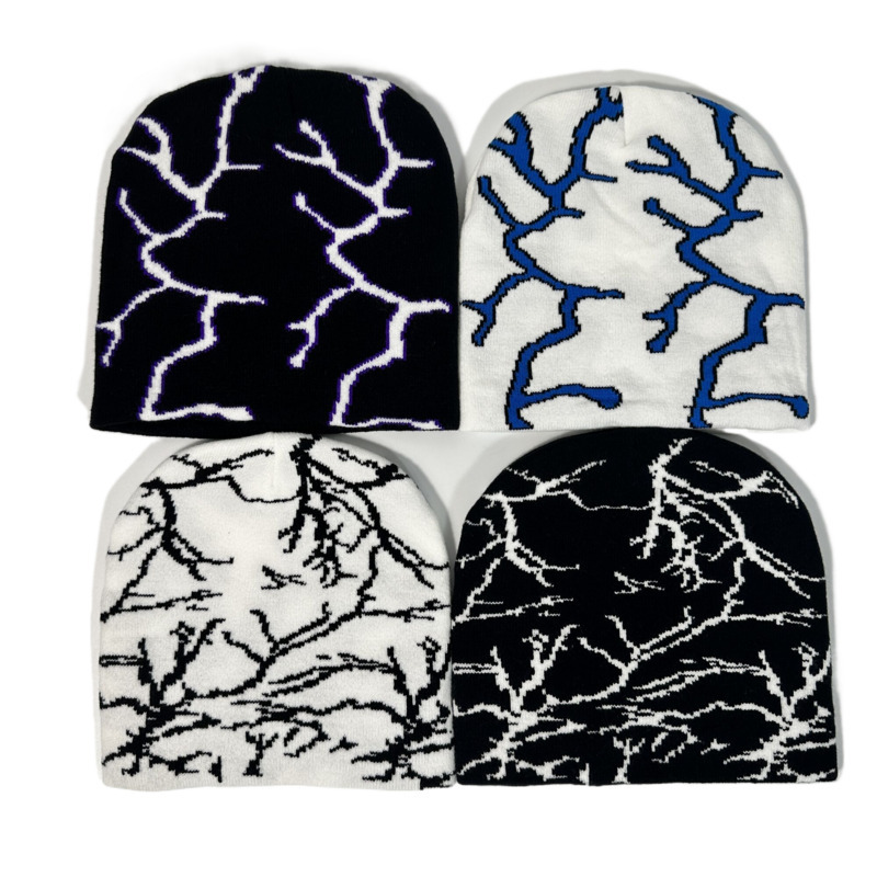 秋冬の新型白黒の稲妻のクールな風のニット帽欧米の暗黒系の毛糸の帽子の越境する男女のスキーの冷たい帽子