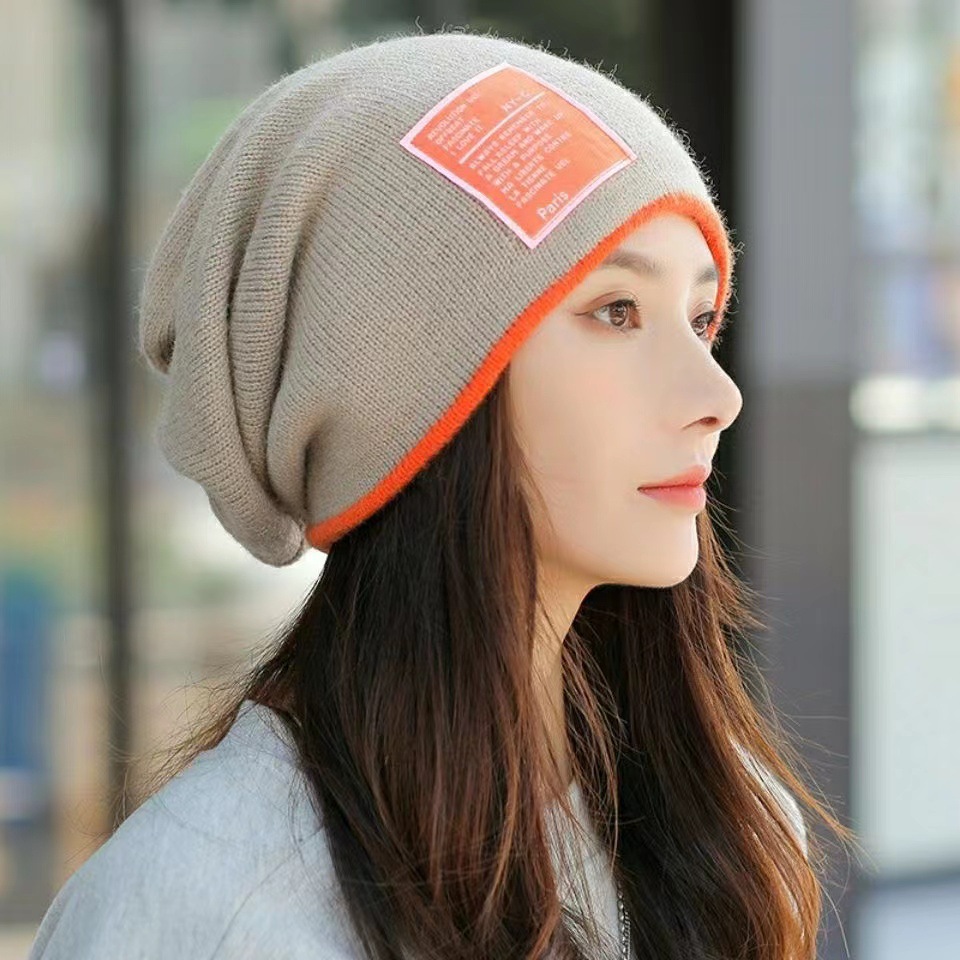 両面ネット赤冷帽秋冬百合毛糸帽保温包頭帽韓版潮日系ニット山積帽女