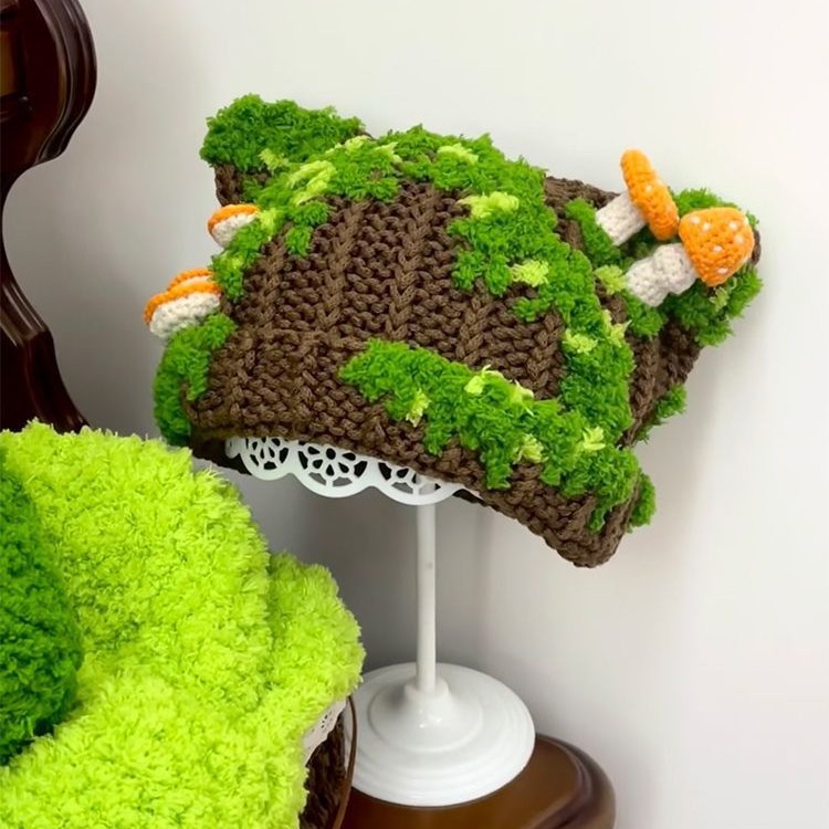 輝毛糸鉤針コケ帽手織りキノコ帽diy材料包猫耳帽が親友にプレゼントする秋冬