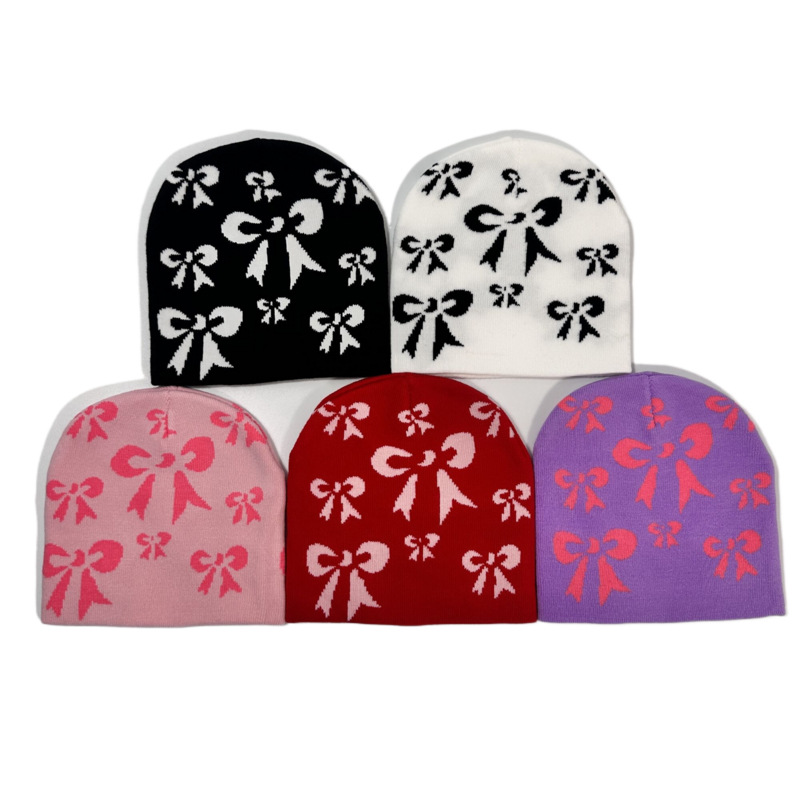 国境を越えた新型蝶ネクタイ帽子秋冬韓版ファッション百合毛糸帽子秋冬防寒保温ニット帽子潮