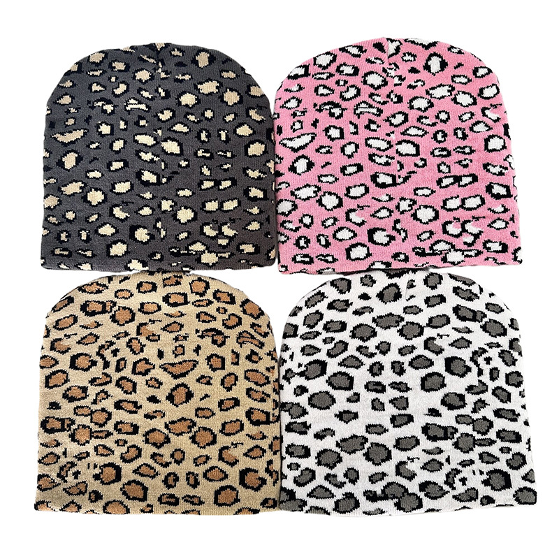 現物クロスボーダー新型秋冬豹柄ジャカードニット保温帽子子供欧米のファッションアウトドアスキー冷帽子