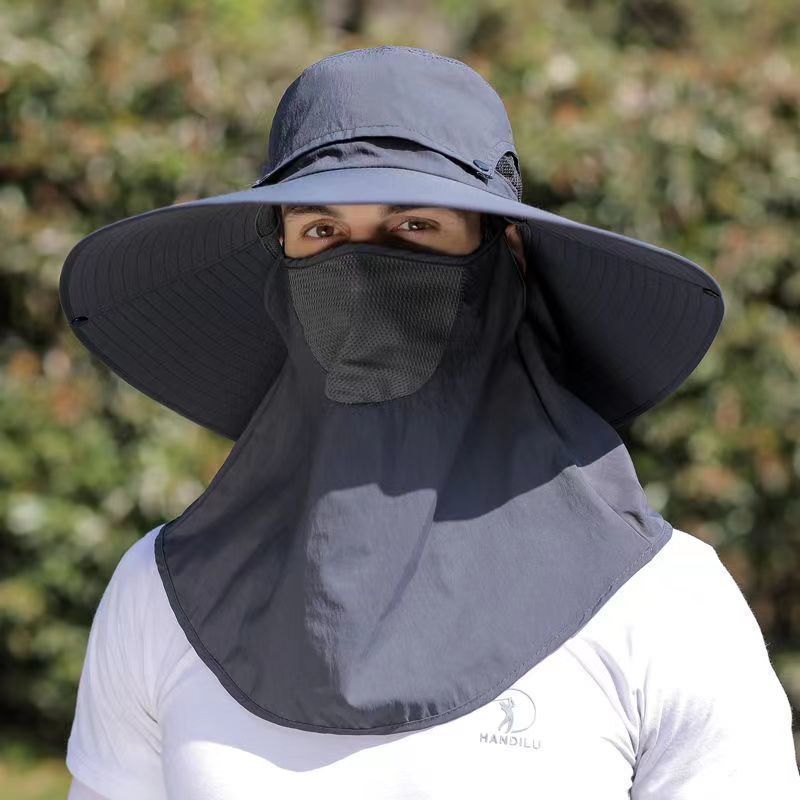 漁師帽夏紫外線対策日除け帽子男釣りマスク首保護一体大つば太陽帽茶摘み帽子