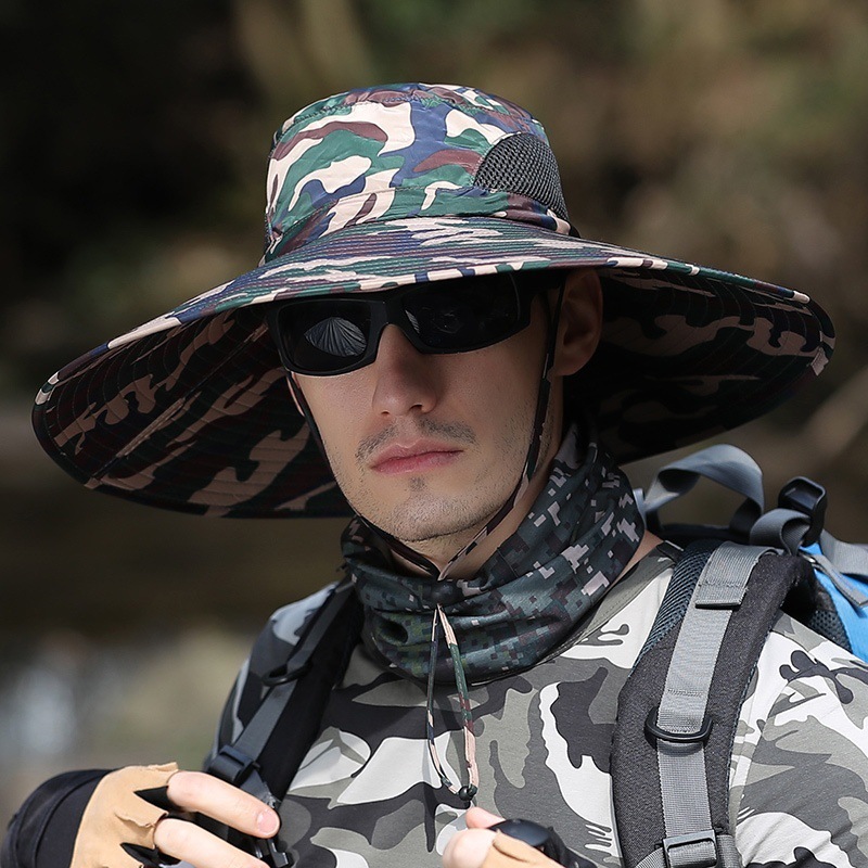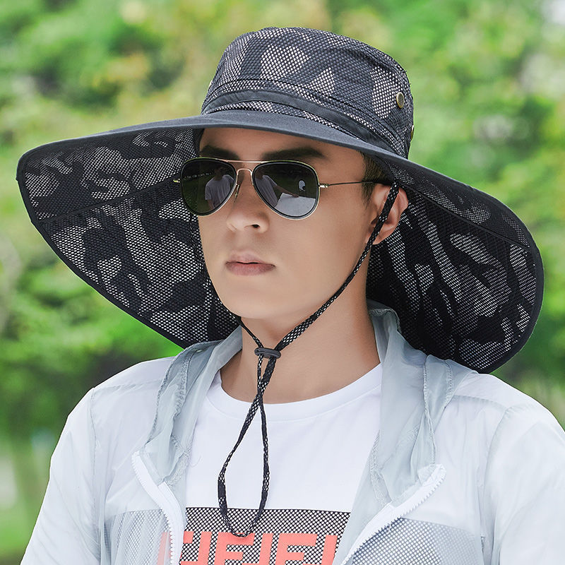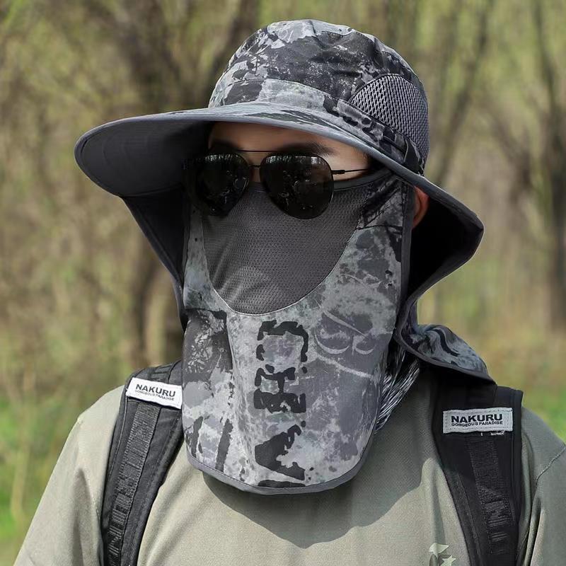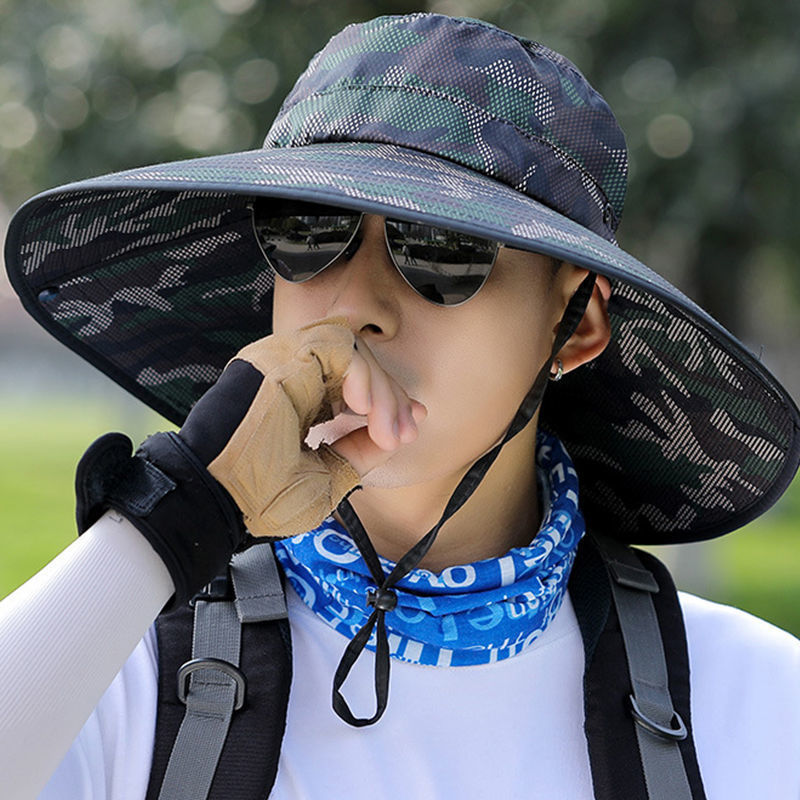 迷彩帽男性釣り帽アウトドア登山帽夏日除け日焼け止め帽大きなつば漁師帽顔を隠す工事現場帽