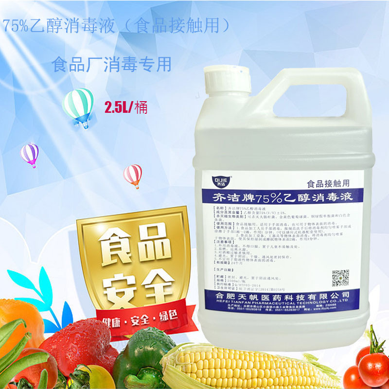 チー潔2.5l 75% 食品アルコールエタノール消毒液食品級消毒アルコール2500ml食品工場消毒