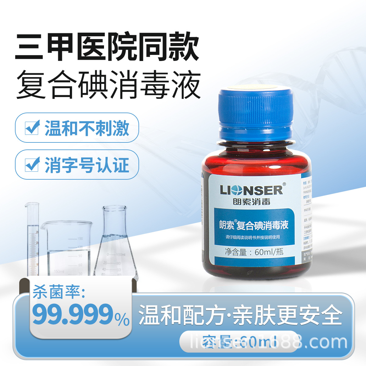 朗索複合ヨードフォア消毒液60ml 病院用 殺菌 皮膚 傷口 家庭用ケア ヨードフォア消毒液