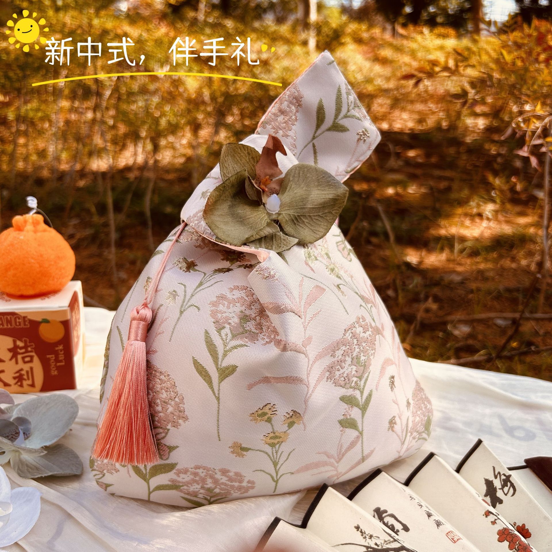 花嫁のお土産新中国式手首包金糸ジャカード流蘇結婚慶節礼箱軽贅沢収納袋礼箱