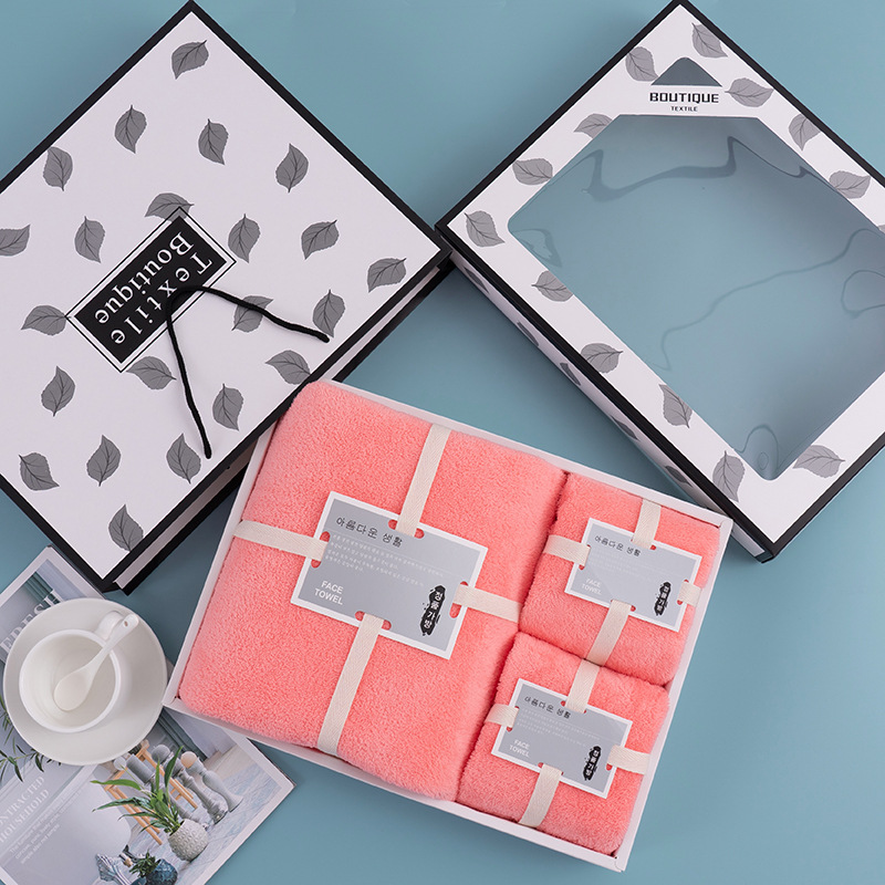 クロスボーダーコーラルベルベットタオル・バスタオル3点セットギフトボックス 結婚式・家庭用・イベント・ブライズメイド・記念品・ギフト