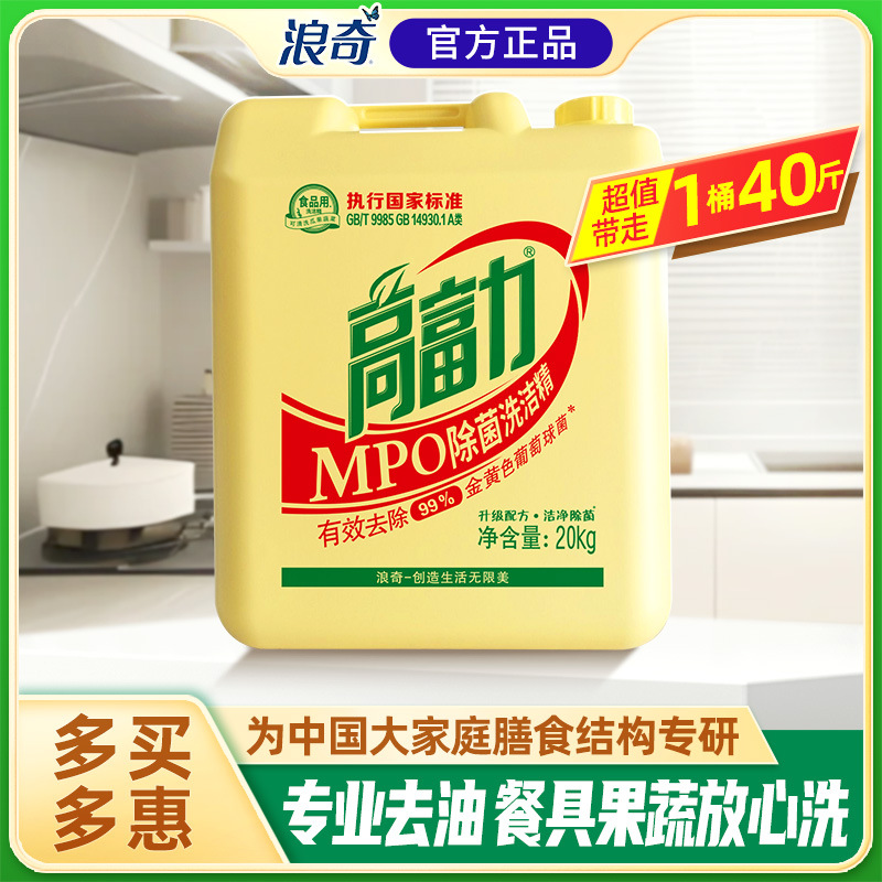 浪奇高富力mpo除菌洗浄精20kg大桶にレモン味ホテルのレストランキッチン業務用40斤