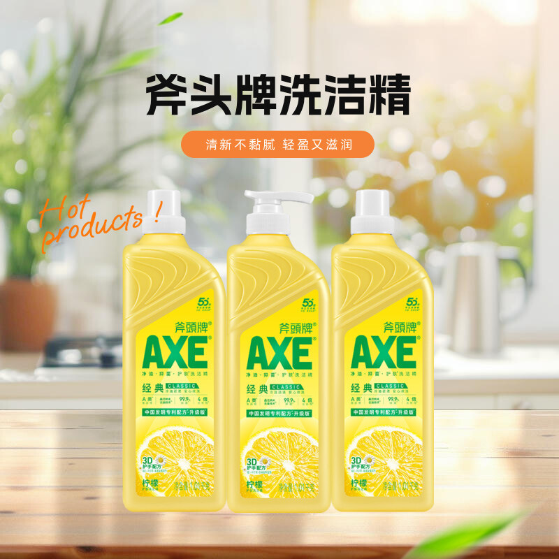 Axe斧ブランド食品用レモンスキンケア洗浄家庭用手を傷つけない皿洗い液1.01kg * 3本