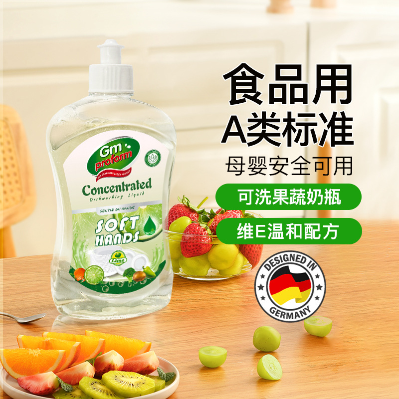 ドイツ産プルームライム食器用洗剤、ビタミンE配合、手に優しい食品グレード、哺乳瓶洗剤、果物・野菜洗浄
