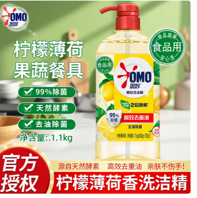 OMO オモ 高効率食器用洗剤 レモン 重油汚れを落とす フレグランスミント 果物と野菜の食器用洗剤 1.1kg