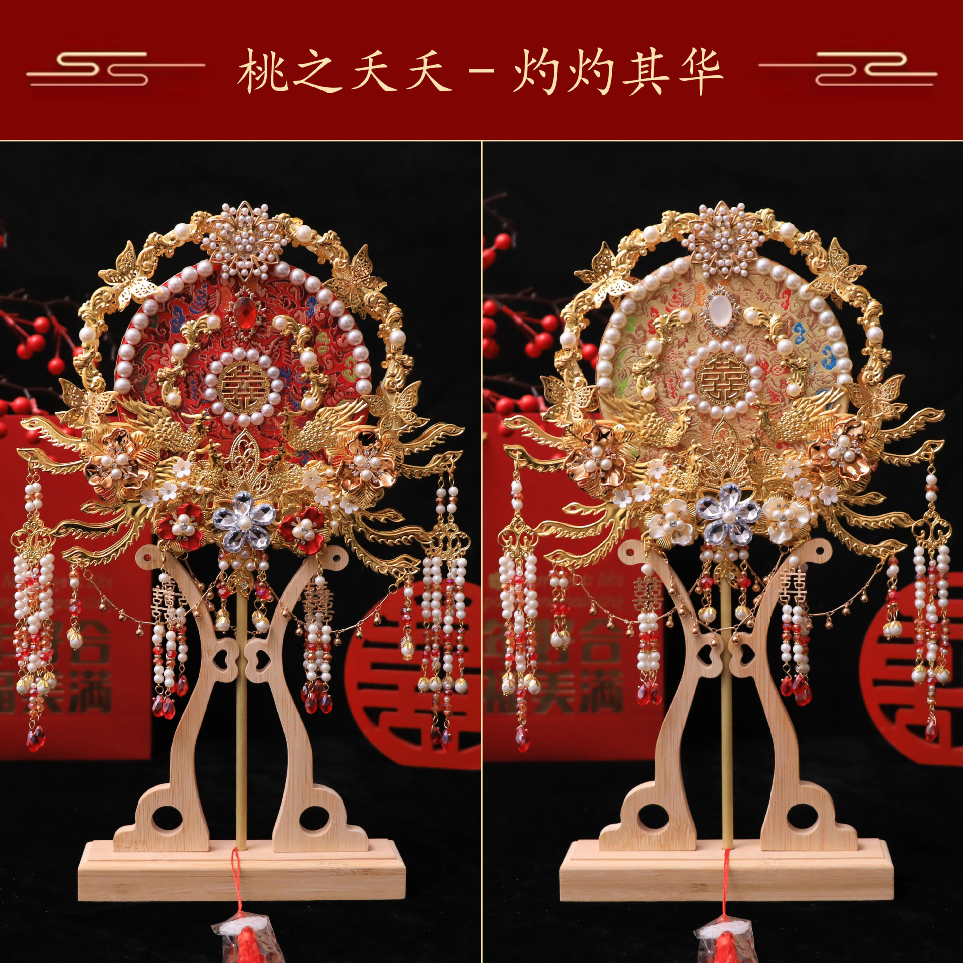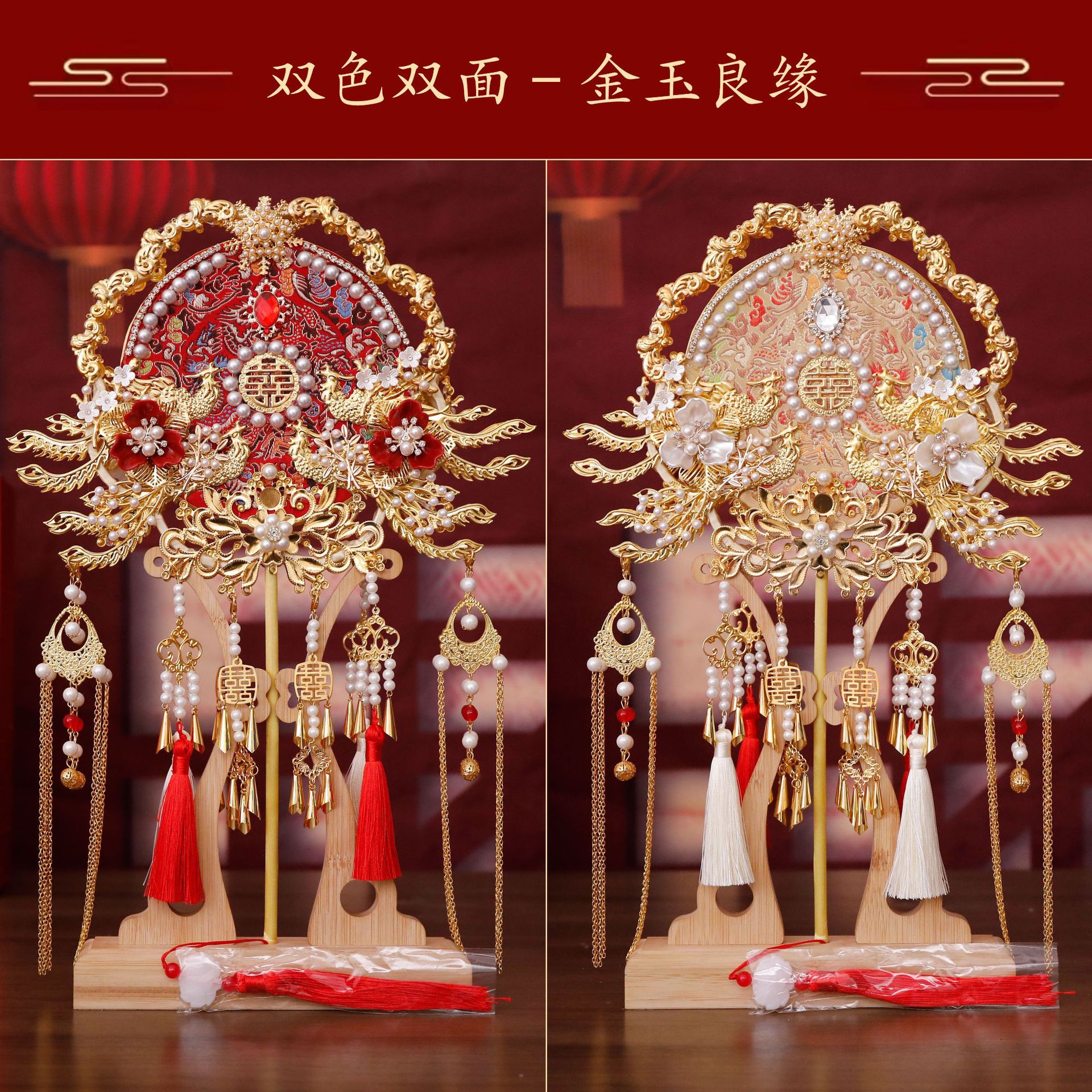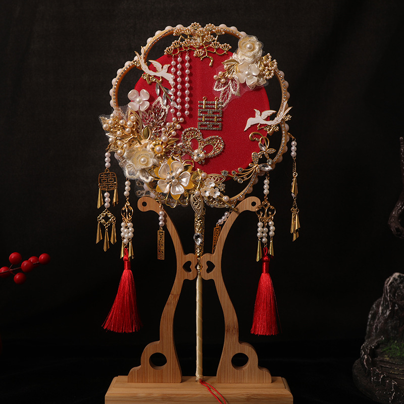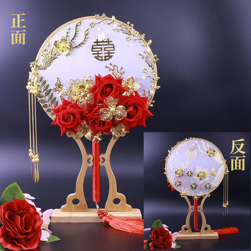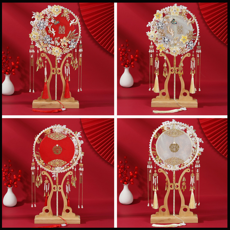 花嫁秀禾団扇手作りdiy材料バッグ結婚扇手作り喜び扇マスク