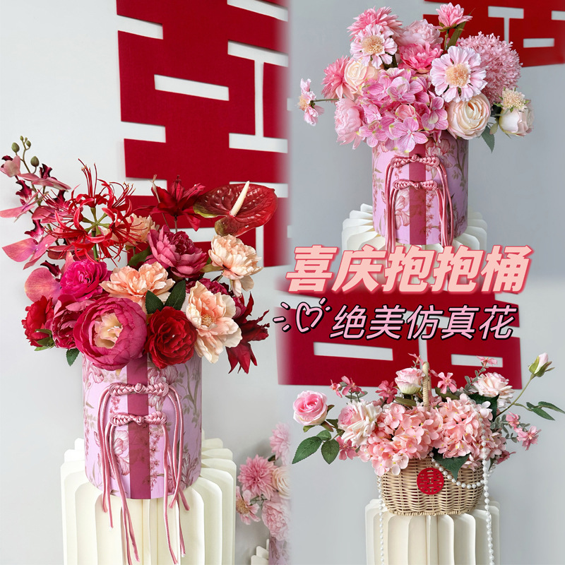 結婚部屋の置物は花の結婚祝いの赤い新しい部屋のリビングルームに花の結婚式を飾って結婚します。