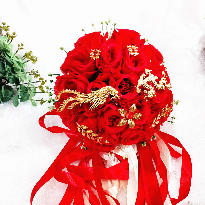 花嫁用造花バラのブーケ、人工撮影用ウェディング小道具、卸売、中国風和服用シルクフラワーブーケ