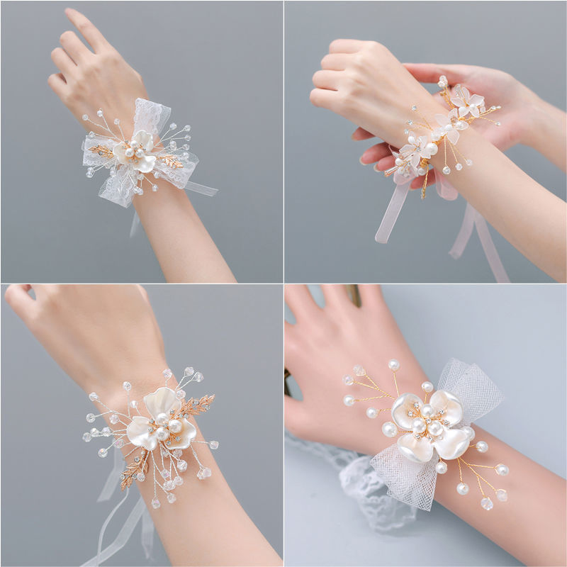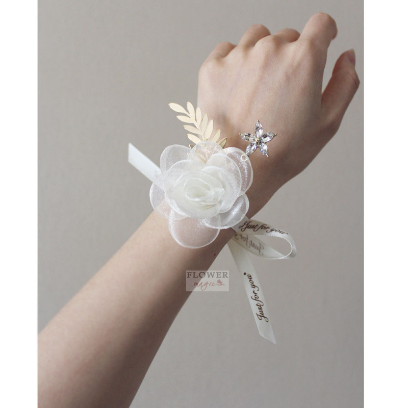 ブライズメイドの手首の花、結婚式の花嫁の高級ブレスレット、コサージュ、妖精の結婚式の姉妹グループ、白い記念品