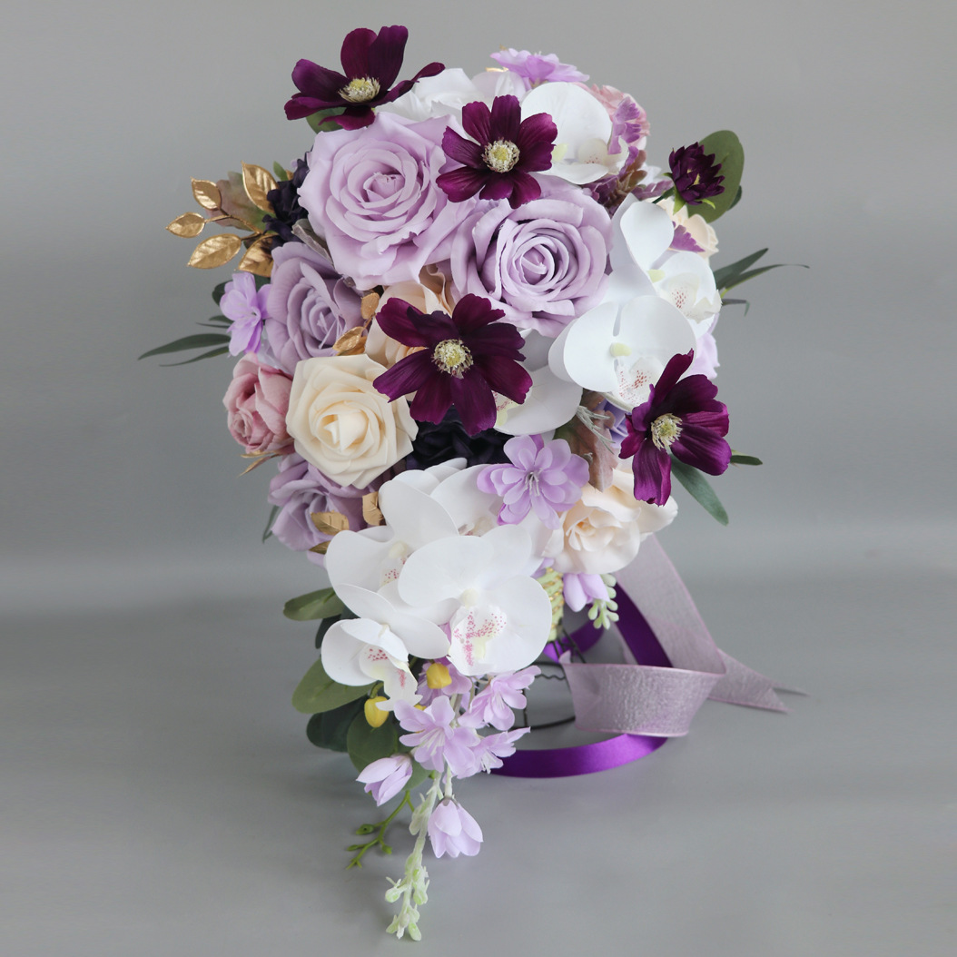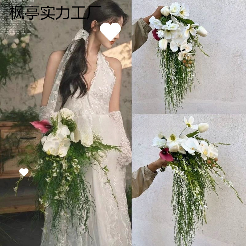 フォレストスタイル旅行写真ガーデンスタイル結婚式の写真撮影の小道具美的写真結婚式の滝水滴シミュレーション花嫁の花束