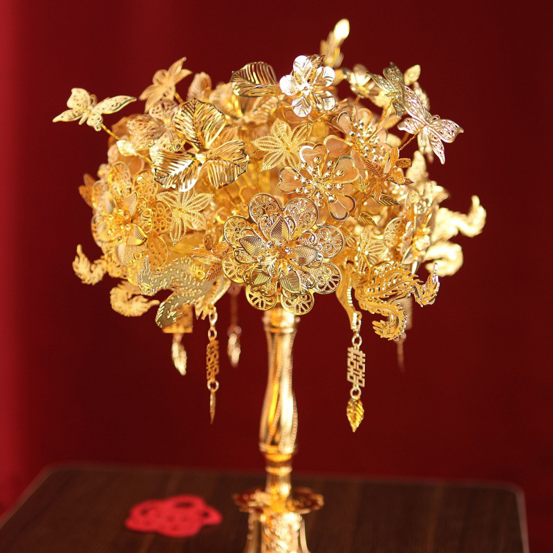 ゴールデンブーケブライダル中国風の結婚式合金秀和チャイナドレスドラゴンとフェニックスガウンドレッシングガウン漢服アクセサリー