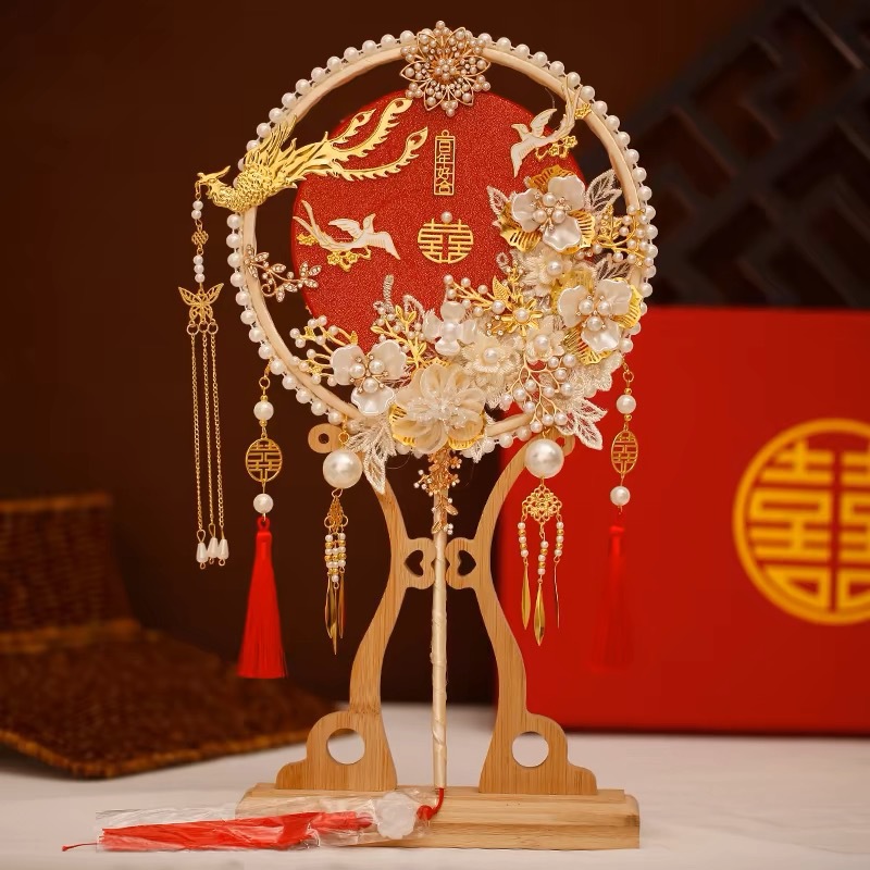 花束を持つ花嫁扇子、婚約証明書、朝のローブ、Xiuhe、新しい中国風の完成した扇子