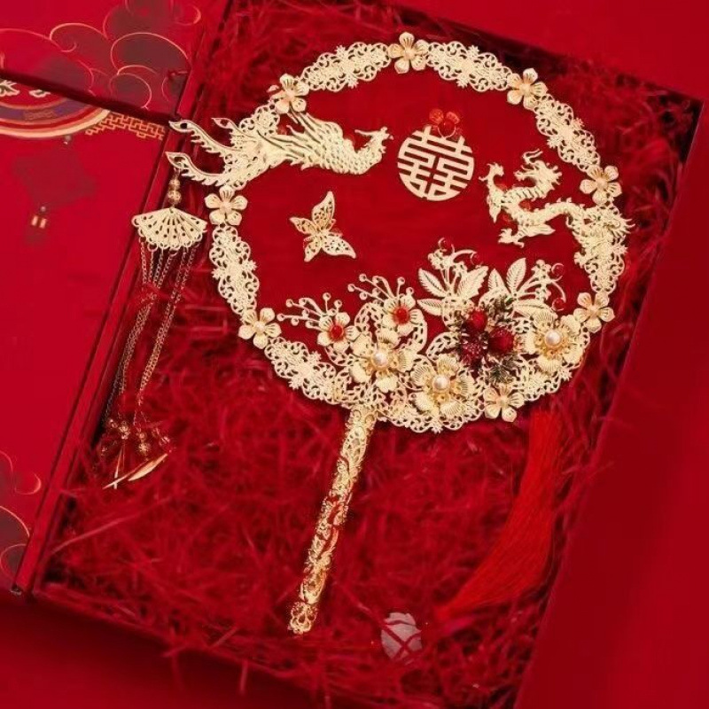 中国風の結婚式の扇子、花束、ドレッシングローブ、秀和扇子、花嫁の結婚式、結婚式、婚約写真、結婚式の小道具