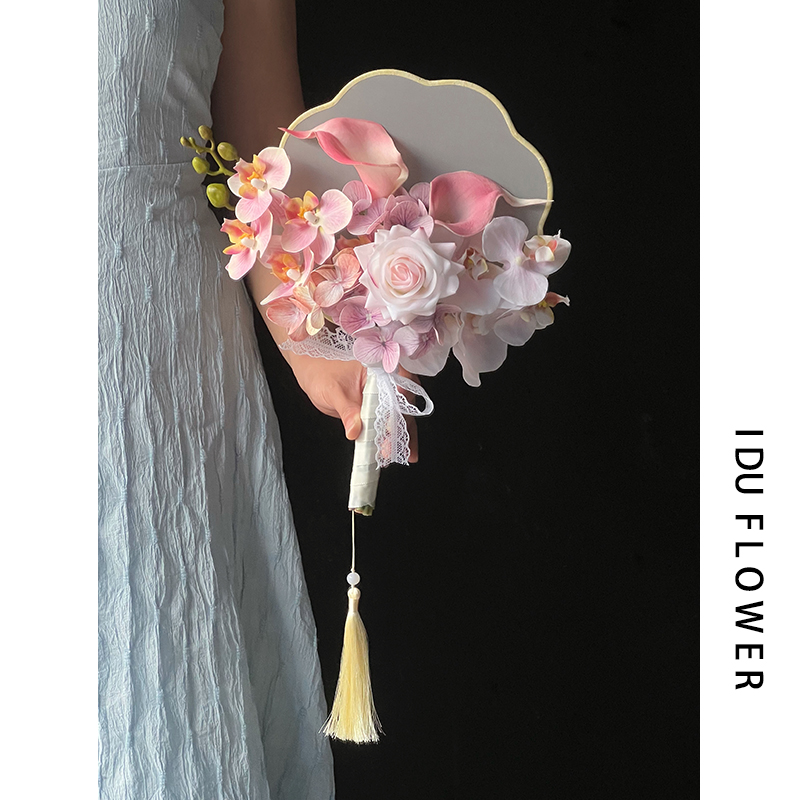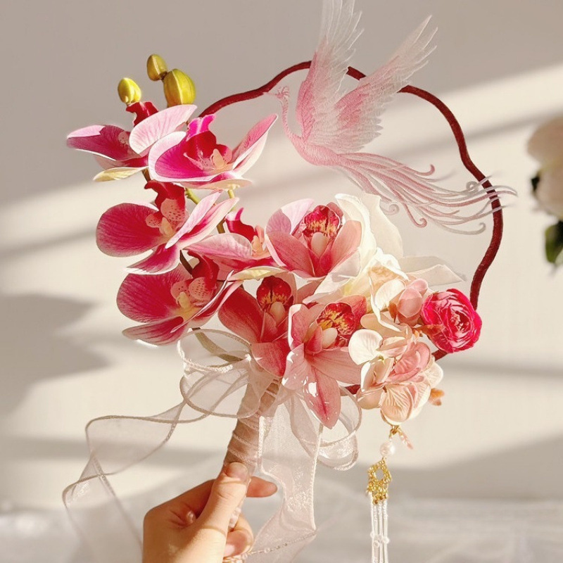 中国風の花嫁の花、結婚式の扇子、結婚式のクリエイティブな花のボール、模擬花の扇子、結婚式の写真撮影の小道具