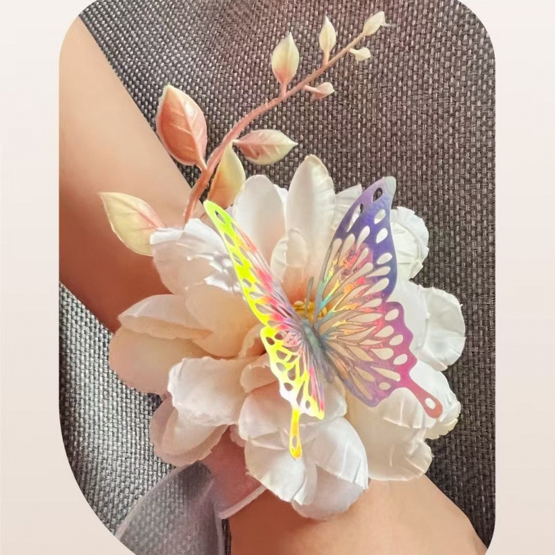 パフォーマンスダンスブレスレットフラワーブライズメイドグループウェディングリストウェディングフォレストハンドフラワーブライダル美しい花蝶の花