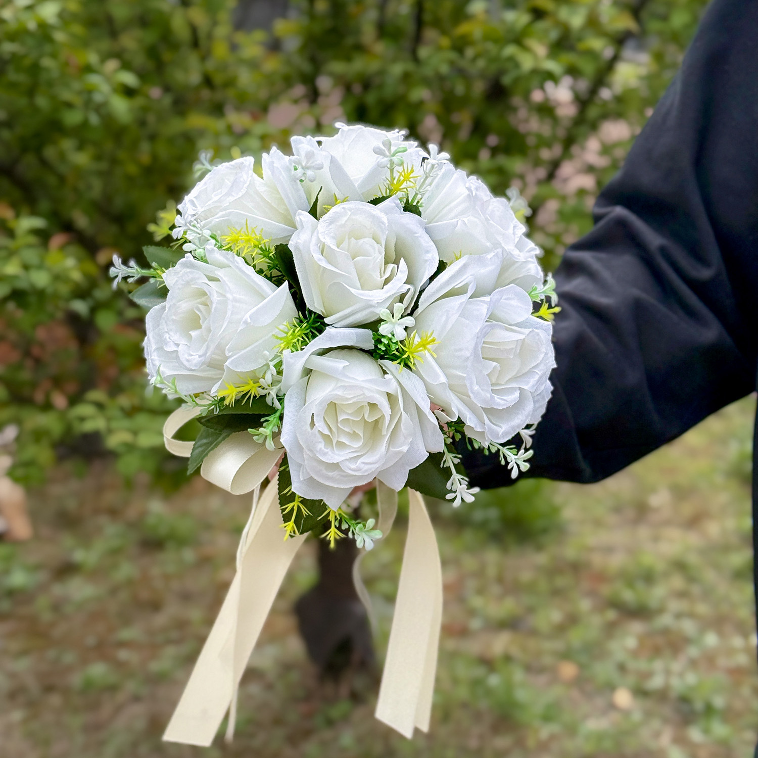 花嫁のバラの手は花の森系の小さいサイズの白い領収書を持って花の結婚式の装飾の花の花嫁の花の子供の手は花の25を持ちます。