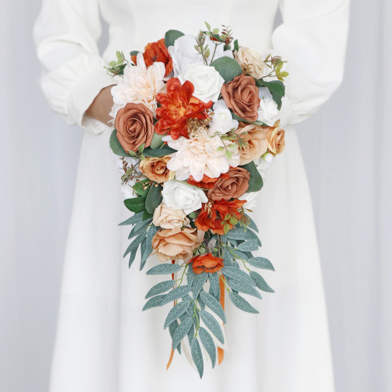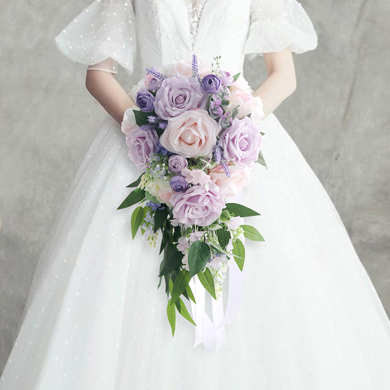 花嫁の水滴をシミュレーションして花を手にして結婚式の写真を撮る道具森系映画館写真花束アマゾン工場店