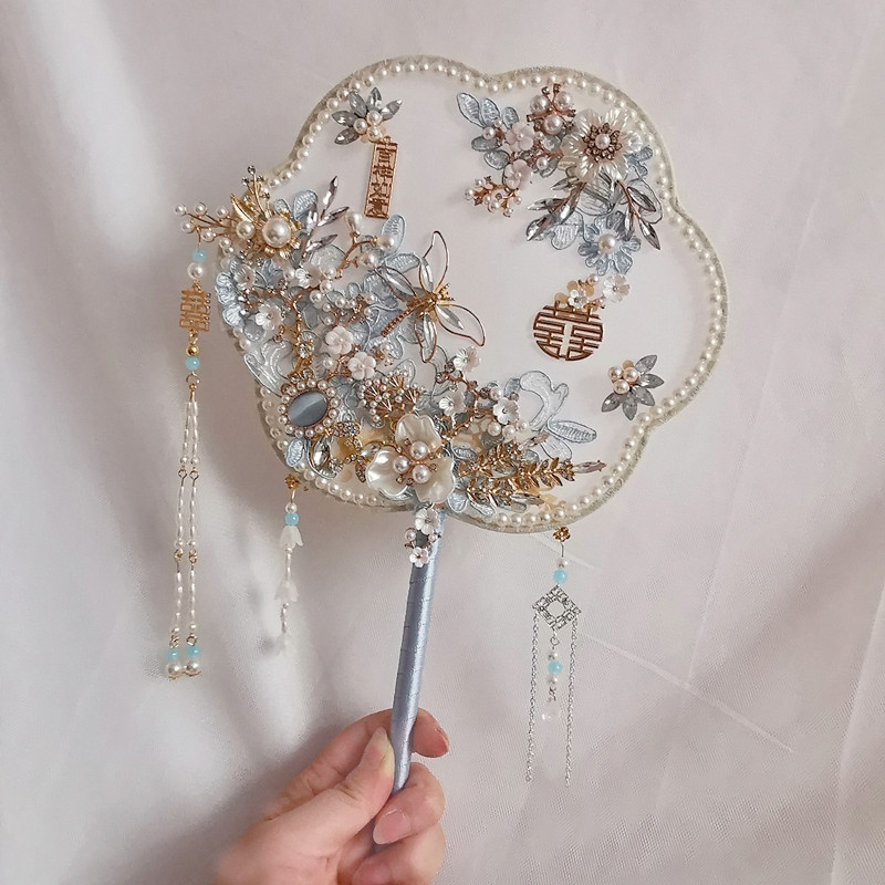 中国式古風花嫁結婚式完成品団扇氷青秀イネ服結婚喜扇diy材料包高級扇