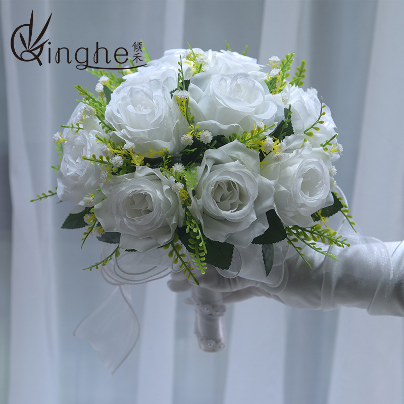 ブライダルブーケ、高級造花、白い結婚式の写真、韓国の撮影小道具、証明書の花の装飾