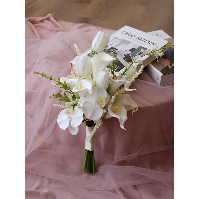 手持ち花束オランダカイウユリチューリップフレンチエレガントな花嫁の結婚式の写真の小道具家の装飾の装飾品